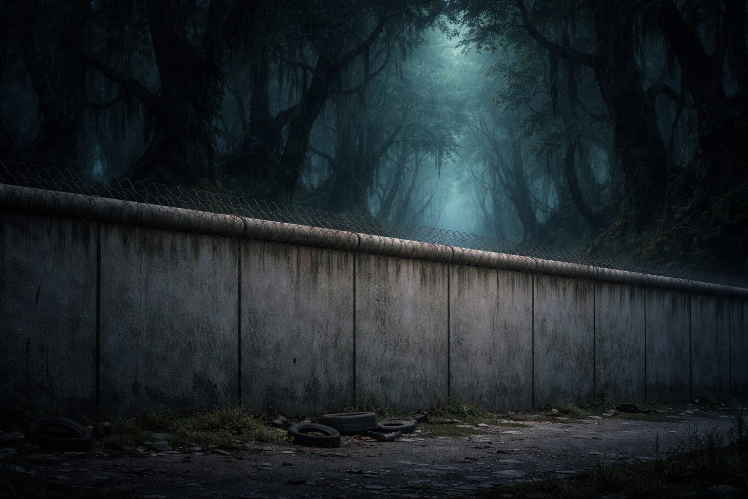Then at last, weary and breathless with fear, they came to a great wall forged of concrete and steel before an endless wood of towering trees that blocked out the stars.